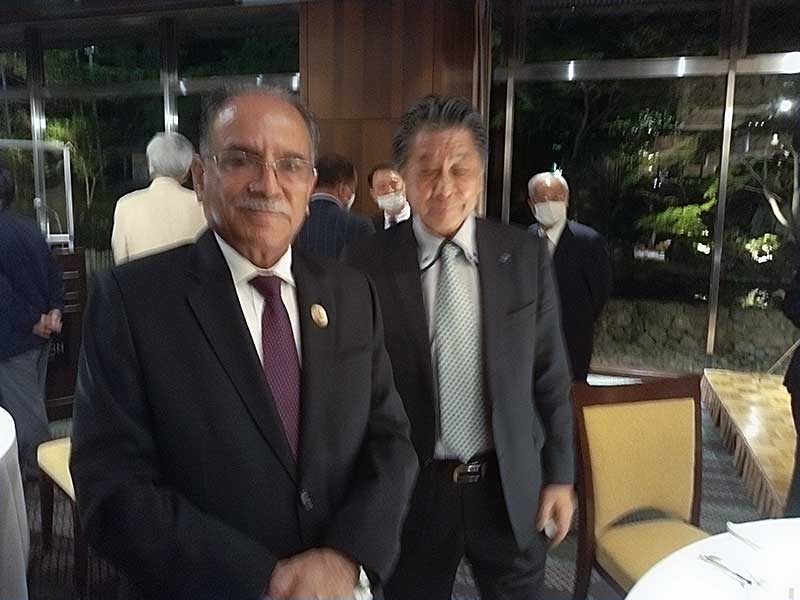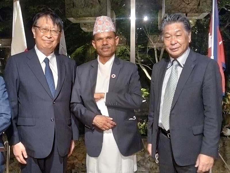 西郷前大使(左)、バッタライ国会議員(中央)